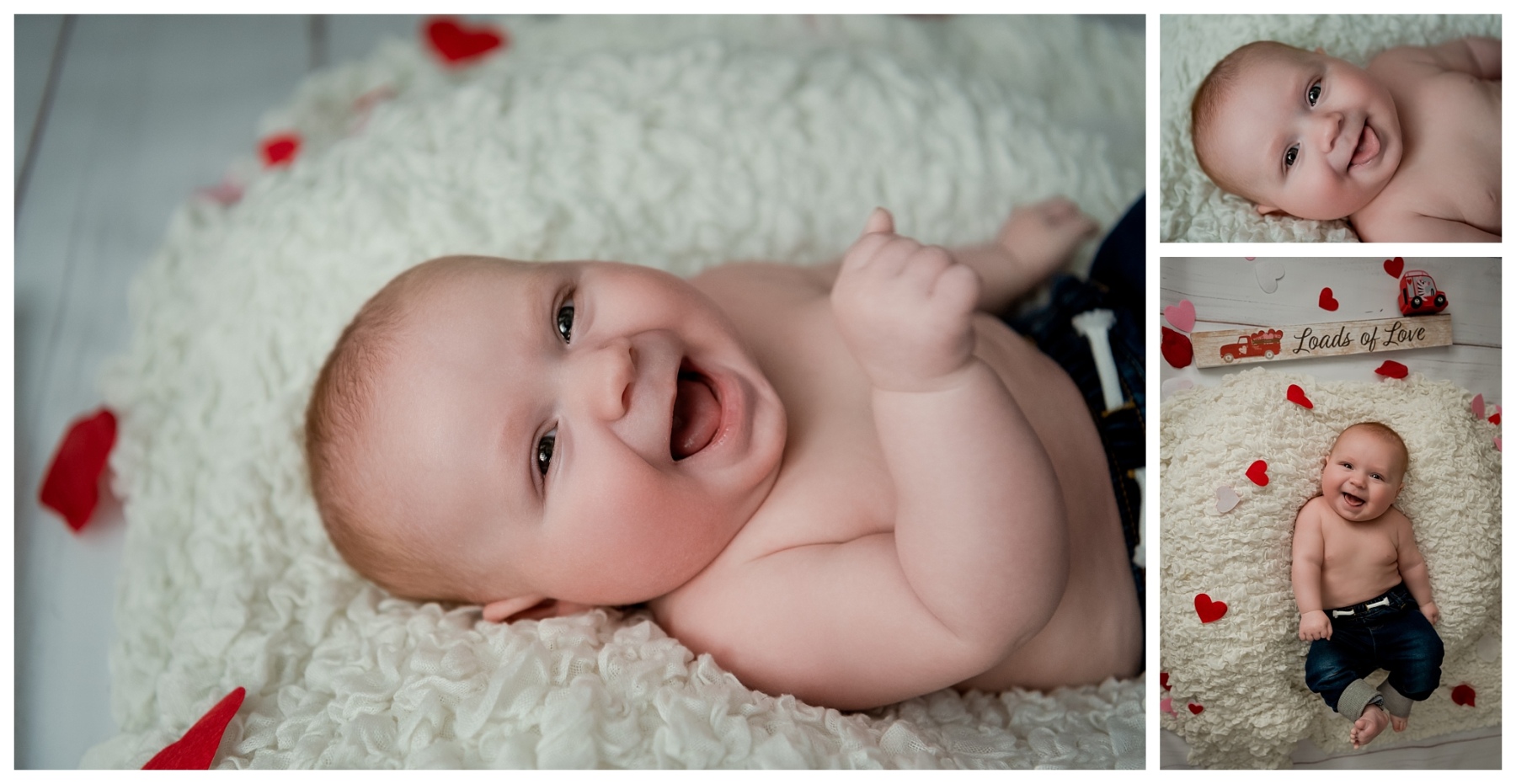 Each session is so different from the next because babies change so much, so fast. I have lots of props to help them get into different poses and to keep them happy so we can get those great smiling photos!