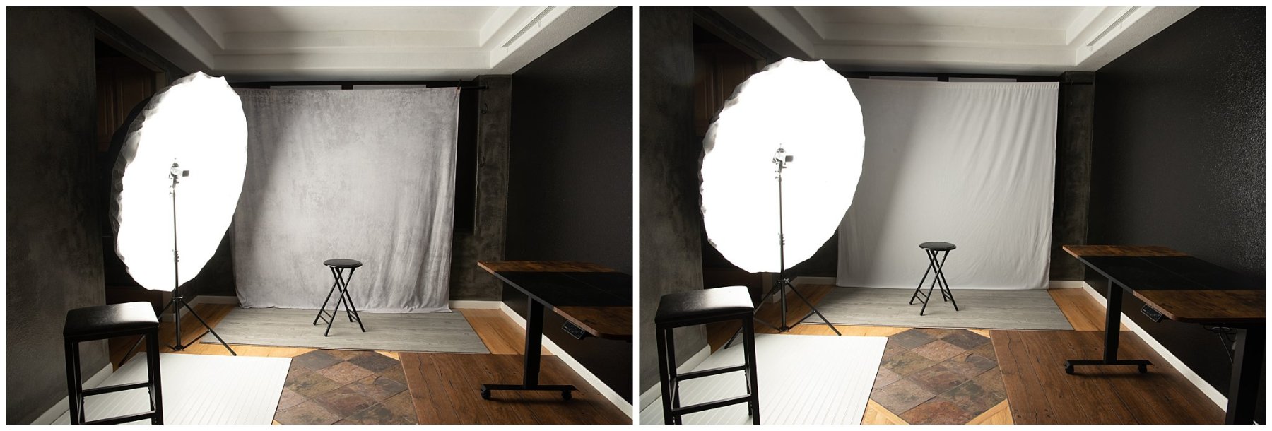 - Backgrounds -Black, white, light grey, and dark grey, cream,